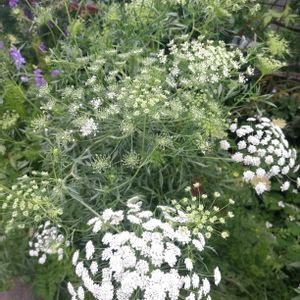 ホワイトレースフラワーも咲き出しブラックレースフラワーと花壇を埋め尽くしています。 千鳥草が今、あちらこちら咲いてます