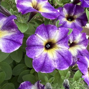 サントリー、サフィニアパープルミニ🌺ミリオンベルイエロー🌼 どちらも30度でもへこたれない!すっごいモリモリ‼️🥰