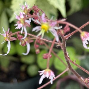 ユキノシタ♪ 地味っ子シリーズ。 赤い斑入りのユキノシタ①〜③と普通のユキノシタ④⑤。 葉の色に合わせて花の色も違うとは! やるねぇ。じみっこかと思ったらオシャレさんだったわ。