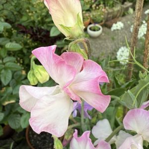 スイートピー♪ 初めて植えてみました。 ガッツリ松田聖子世代ですが、選んだのはピンク、白、紫。 私の中のスイートピーは赤じゃないんです。 まぁこの組み合わせのかわいいことよ! きっと赤も可愛かろう。 ちなみに私は明菜派でした