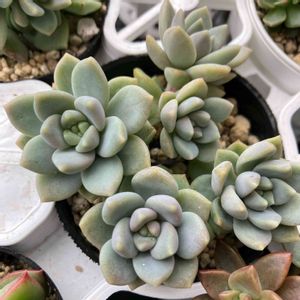 我が家のべっぴんさんの多肉ちゃん ライラックミスト 3株中、1つが途中から真っ白に近く、色白スベスベお肌って感じになってます。 ホームセンターで初めて買った3種類の一つですが、この3つはどれも丈夫ですくすく育ってます。