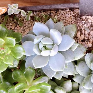 2024.2.15 多肉ちゃんにハマってしまったので、近くのホームセンターで買ってきたものを、プランターに植えてみました。 現在、結構大きくなってます。これは記録用に買ってきた日の写真。 左から ヌスバウメリアナム レティジア ライラックミスト