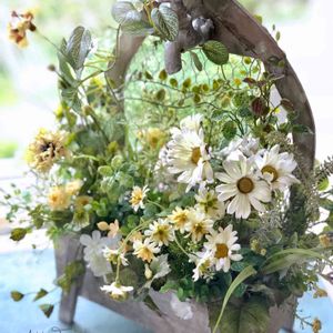 ブラッシュアップレッスンにお越しくださいました、卒業生の作品です。 寄せ植え?ギャザリング?と 見間違えてしまうような、 本当にナチュラルなアレンジです。