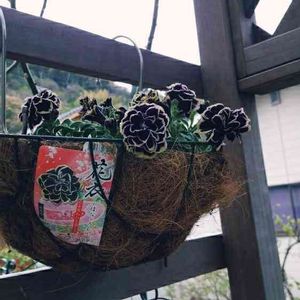 ペチュニア/花衣です。とにかく見たことのないペチュニアだったので購入し、昨日、ハンギング・バスケットに植え付けました。物凄い強風に耐えています。