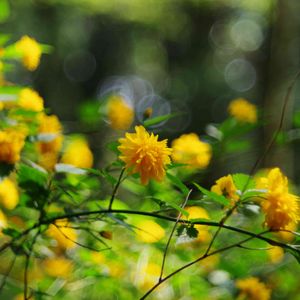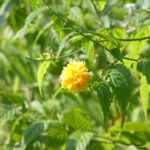 【八重咲ヤマブキ】🌼 開花時期は、4月中旬~5月初旬頃 ヤマブキより少し咲き始めが遅い様です 八重咲のヤマブキは蕊(おしべ、めしべ)が変異した物、ヤマブキの品種です。 理屈上は野生でも存在しえますが、種はつけませんので、つまり挿し木や取り木で増やしていかなければ一代限りと言うことです、悲しい😭 野生で見かけた場合は、誰かが増やした可能性が有ります〜👍😀 八重咲き種のヤマブキには実がなりません 花言葉は、「金運」 💵が舞い込むかも〜 (//∇//)👍😀