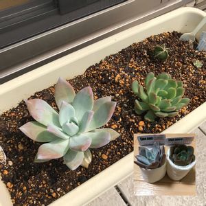 エケベリア加わったら一気に華々しくなってきました🤩 グリーノビア(アエオニウム )も全開になり見てるだけで癒されます(*゚▽゚*)