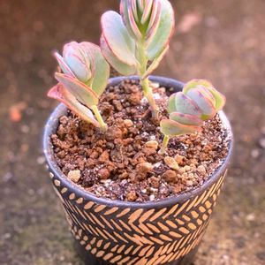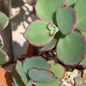 メルカリ購入多肉ちゃんその❹最終回 メルカリで複数カット苗セットを購入しました。 このコも単体で植えたやつ😅 忘れてた😭 白姫の舞? だと思うのですが… フチがピンクで可愛いなぁ😍