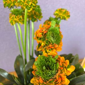 おはようございます お出かけ先にあった ☆ラナンキュラスポンポンメルリーノ 黄色の花びらの中が グリーンの葉っぱ🌿のようで ボリュームたっぷりです ☆シロタエギクを入れた 大人しい色合いの ビオラの寄せ植え ☆ビオラの鉢植
