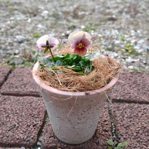 ビオラ カフェオレ☕ あっち向いてる子は薄いピンク。 ビオラって同じ株でも色合いが違うのですね😊