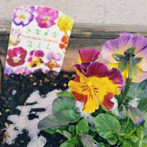ときめきスミレ🎵 フリフリで良い香りがして1ポット100円(*´∀`) 値段にもときめきました💕 雪の中頑張ってー!