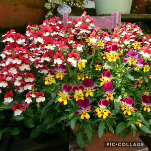 :.* ♡(°´˘`°)/ ♡ *.: こんなに咲いたよ~💕 ネメシアとビオラ(ファンシーレッドラビット)の寄せ植え🐰