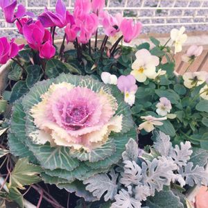 冬の寄せ植え♡葉牡丹の色に合わせて紫のグラデーションを作ってみました(^-^)