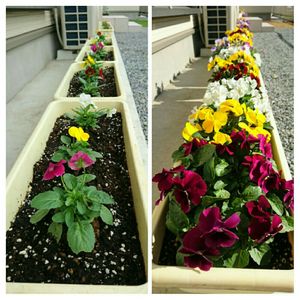 左側 植えた直後(10月中旬) 右側 現在(12月中旬) 比べるとこんもり咲いたな〜と実感(*^-^*)
