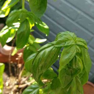 ベランダにいるバジルさん… 1回花芽を摘んでからめちゃくちゃ元気。 寒くないですかね?
