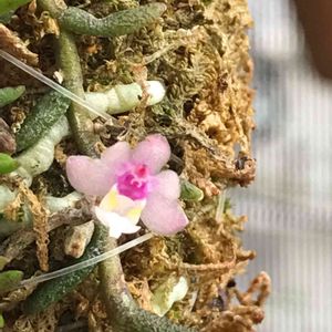 今年の春に流木に付けたフウランが咲きました。 まだ完全に活着してはいないけど、無事に育っています。