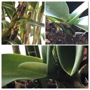 上手く咲いて欲しいな💓 左上 セッコクランの蕾 右上 ミニ胡蝶蘭の花芽 下 ミニカトレアのシース