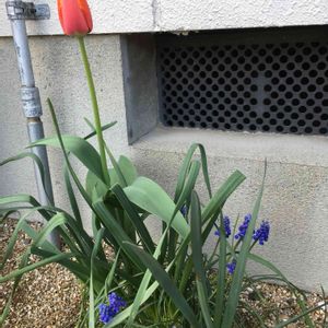 今朝は、寒い雨上がり😵 発見!ほとんど目立たない我が家の北側のキッチン窓下に🌷 植えた覚えもないし? けど、🌷咲いてる👏 お日さまの光も当たらない場所で。 そっと、頑張ったねと声かけ😊