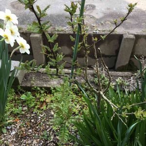 雨上がりの朝、裏口に、芽吹いてる山椒の🌿 この木も、植えた覚えないんですよ。年々少しずつ大きくなってます。 このくらいでいいかな(笑) 早速、この時期ならではの香りを料理に添えようっと😊