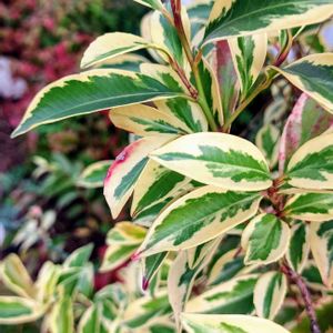 ~斑入りサカキ~です🍃 鮮やかな彩りです🎵 カラーリーフとして明るく、 寄せ植えの中心木にもオシャレです。 年間を通して、 クリーム色の斑入り葉が楽しめます。