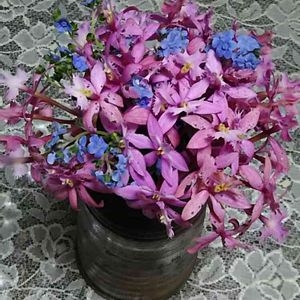 お庭のお花を切り花にして、楽しめる…幸せ(✽︎˙ω˙✽︎)♡︎ ☆にしてしまうウィンターコスモス、今年はちゃんと咲いてくれてます✨ 花びらも戻って、5枚💖 大好きビオラは良い香り〜 カウンターに座ると、ふわぁと香りが(*≧︎艸≦︎) 幸せ💕