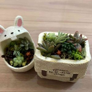 今日は園芸店のイベントで、多肉ちゃんの寄せ植えしてきました✨ うさぎ🐰は私作。 隣のカバンは、上の子作。 末はマグネットにドライを貼って、真ん中はお花のドライを貼ったサシを作りましたよ💖 多肉ちゃん、枯らさないようにしないと💦
