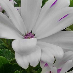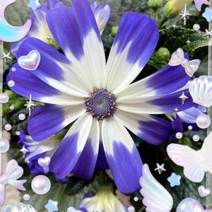 白と青い花びらの、サイネリアを見つけました‼️ お花の大きさが,10センチもありました💙Σ('◉⌓◉’) 小さな鉢植えに大きなお花と葉で、鉢が見えません💚