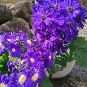 私の大好きなお花です😊💜💙💜💙💜 ◎ サイネリア シネラリアは草丈20~30cmで半球状に育ち、カラフルな花をこんもりと密に咲かせる冬から春の室内用鉢花として親しまれています。 園芸的に「シネラリア」と呼ばれていますが、実は、シネラリア属ではなくペリカリス属に分類される植物です。スペイン領カナリア諸島原産のペリカリス・クルエンツス(Pericallis cruentus)、 ペリカリス・エリティエリ(P.heritieri)、ペリカリス・ポピュリフォリウス(P.populifolius)、ペリカリス・トゥシラギニス(P.tussilaginis)を交配して、背が低く半球状に育つように改良された結果、今の姿になりました。しかし、近年では再度野生種と交配され、草丈50~60cm程度に育つ園芸品種もあり、木立ち性シネラリアと呼ばれています。 夏から秋にタネをまいて育てる種子系の品種と、さし芽でふやす栄養系の品種があります。どちらも暑さに弱い反面、徐々に慣らせば最低温度1℃程度まで耐えます。真冬に開花株を購入した場合は、最低温度5℃以上を保つようにしましょう。 🏷 (祝)青い花マニア4周年 (2021年3月撮影) いつも見て下さりありがとうございます🙇♂️💙 これからもどうぞ宜しくお願いします。 💙💜💙💜💙💜💛🧡❤️💜💙💜💙💜💙 🌱🌱🌱🌱🌱🌱🌱🌱🌱🌱🌱🌱🌱🌱🌱