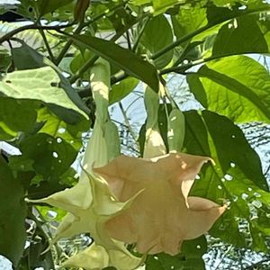 おはようございます^o^😊 🌼🌟エンジェルストランペット🌟🎺 (*゚∀゚*)別名 木立朝鮮朝顔 ブルグマンシア ラッパ状の花がぶら下がって咲いてます💓 ( ^ω^ )🧡 2022.1.8