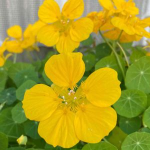 おはようございます^o^😊 花散歩🚶♂️💐 ✴️🌟金蓮花(ナスタチウム)🌼(๑・̑◡・̑๑) 外食で食べたことのあるお花🌼🌟 キンレンカ(金蓮花)の名前は ハスのような丸い葉と金色の花(赤、黄、オレンジなどもあります)をつけることに由来します。若葉と花は食用にでき、サラダの彩りによく利用されます。葉はビタミンCや鉄分を多く含みます。 只、園芸店で売られているもので 食べれないものもあるようです。