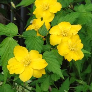 🌼「ヤマブキ(山吹)」🌼 林の端っこの遊歩道で見つけました💛 差し込んだ光で輝いて✨ 幸せを運ぶ流れのようです🌿🌼😊 あれっ!花弁が6枚?🤔 バラ科ヤマブキ属 花言葉 :「気品」「崇高」「金運」