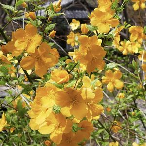 「ヤマブキ(山吹)」✨🌼 みどりのまとめ(三溪園)の1枚です💕 日差しを浴びて、より鮮やかな色になっていました🎶 バラ科ヤマブキ属 花言葉 :「気品」「崇高」「金運」