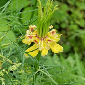 黄色の花びら、突き出た花芯、そして、花後の姿もユニークなニゲラ(クロタネソウ)です✨🎶 🌼 昨年5月7日撮影