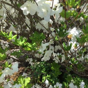 五葉躑躅。シロヤシオ。 山のものなので、いつ花が咲くのかわかりません。今年も新緑を楽しむのみ。白い花が咲くのを気長に待ってます…。 那須に行って山に咲く白い花が見たいなぁ。
