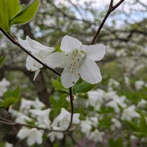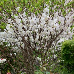 ’シロヤシオツツジ(白八潮)‘ ようやく三分咲きまで! 剪定にも挑戦したので楽しみな今季😊 今日は強い雨降りなので 遠くからの初撮り📷 お湿り充分!今週末には見頃となるでしょうか💓 ウグイスが一日中鳴いてます🐦