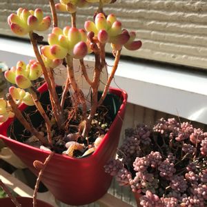 手前の、黒いもしゃもしゃしたやつはモナンテスアナゲンシス。 この子も凍結しちゃって、その後こうなったらしい。 …もう、多分ダメだろうな〜… 春になって新芽が出て来る奇跡ないかな〜〜 他の子は割と元気。