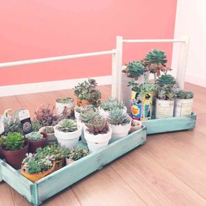 天気が良い日にベランダに出すチーム♪ 多肉移動岡持ち~( •̀∀•́ )✧ 部屋とベランダを何往復もするのが大変で、こんなん欲しいな~と思い描いていたのを家にあった端材で夫から形にしてもらいました。 我が家のDIYはいつも設計から木工担当が夫、色塗りと最初の漠然としたイメージを伝える係が私(笑) 晴れたらササッと出せて夜にササッと取り込めるので楽チンになりました♪