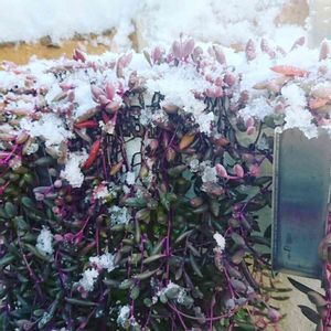 今朝方から雪が降り始めました❄ 今年も、お外で頑張ってます🤗