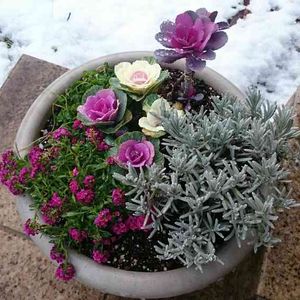 今朝起きたら、寄せ植えが埋もれてた~(*_*)