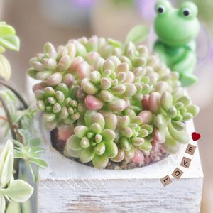 ポケット木箱の寄せ植えの品種紹介、その②です。 寄せ植え中にめっちゃ葉がポロポロと落ちたピンクベリーが主役です。 まだ真緑ですが、早くピンクに紅葉してほしいなあ😊 後ろのブルースプルースは、たぶん…です。 名無しだったので、名前の付いてる子と比較してみないとわからないですね💦
