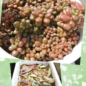 ↖️去年親株が伸び伸びになったのでカット✂️して挿したもの ↘️その時とれた葉っぱを葉挿ししたもの 2つともなんとか冬越し成功😄 かわいいつぶつぶさん❤️ 増やしたーい🥰