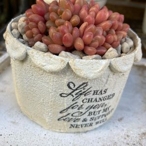 サニコさんのリメ缶💕 ケーキっぽくなるかな〜とジェットバース植えてみました♫ くじ運無い私が、インスタのプレゼント企画で当選🥰 その後、また追加で購入させて頂きました💕 白いリメ缶や鉢、大好き〜♫