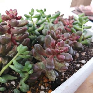 セダム属 『ジェットバース』大型玉葉 Sedum 'Jet Bars' ジェットバースが好きで見付けると買ってしまう。。。 どうやら赤黒っぽいこが好きなようで😁✨(知ってるって⁉️😅) 2階のベランダと1階玄関横と2箇所に置いているんですが、玄関横がすごく色付きました❤️😘 昨日も1つ連れ帰ってしまったので、1階の方に足しました💓 ジェットバースモリモリになって欲しいなー😍💕 うちの子と買った子の差‼️😳 違う多肉のよう🤭