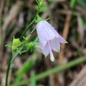 ツリガネニンジン キキョウ科ツリガネニンジン属 多年草 北海道、本州、四国、九州、琉球諸島に分布 山野、山麓、山地の草原、林縁、河川堤防、山道の脇などの日当たりの良い場所に自生する。 名前の由来は、花が釣鐘形で、根の形がチョウセンニンジンに似るので、この名である。 別名はトトキ、アマナ、ツリガネソウ、チョウセンバナ、ヤマシャジンなど。 花期8〜10月 分枝した茎の頂部に円錐状の花序を形成し、淡紫色の鐘形の花を下向きに咲かせる。 花冠は長さ15〜20mmで、先端はやや広がり、裂片は反り返る。 萼片は糸状で鋸歯があり、花柱が花冠から突き出る。 花言葉は「感謝」「誠実」など。