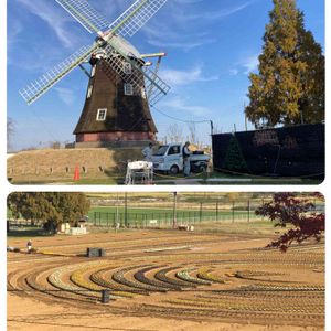 あけぼの山農業公園 風車前花畑 ビオラの植え付け中 その間にチューリップの球根が植えられ4月のチューリップが華やかにみられます