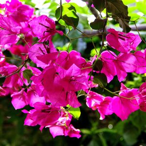 《 情 熱 》 ドアを開けて中に入ると、熱帯特有のムッとした温かさが身を包みます 上を見上げると、赤紫の花が大きく広がり、垂れ下がっていました ブーゲンビレア 南米原産のつる性花木 赤い色の部分は苞で、写真では既に落ちてしまいましたが、中心部に開く小さな白い花がありました。 花の名は、1768年にブラジルでこの花を見つけた探検家ブーガンヴィルに由来しています。 あけぼの山公園の「亜熱帯植物温室」を耀かせていました☺️