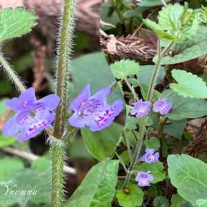 カキドオシ(垣通し) 別名 カントリソウ よく似ているカキドウシ、サギゴケ、トキワハゼの区別がわかるようになってきたかなぁ。 よく似た花は多い。 北海道から九州の野原や道ばたに生える。 2023.4.8撮影