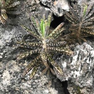 沖縄石畳の道の民家の塀に生えていました。不思議な植物。 初めて見ました。