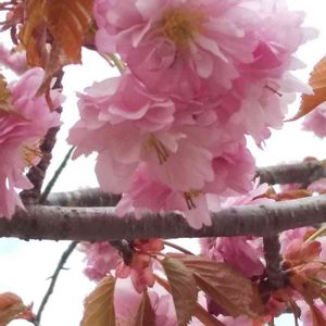 昨日出会った… 八重桜… 🌸サトザクラ🌸 バラ科… オオシマサクラを母種とする園芸品種… のようです… 青い空バックに… 美しさ…二倍!! 💞🌸💖🌸💓🌸🌸 🤗🙆🏻♀️💯💖🌸