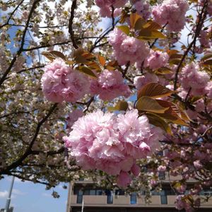牡丹桜が咲き始めています🌸 もうそろそろ染井吉野は散ってしまいますね🥺 濃いピンクと花びらのフリルが華やか✨