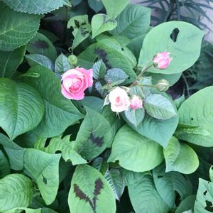バス停の近くで、アジサイに潜むバラを発見! 梅雨入りも近そうだし、コラボは見られるのかな…?